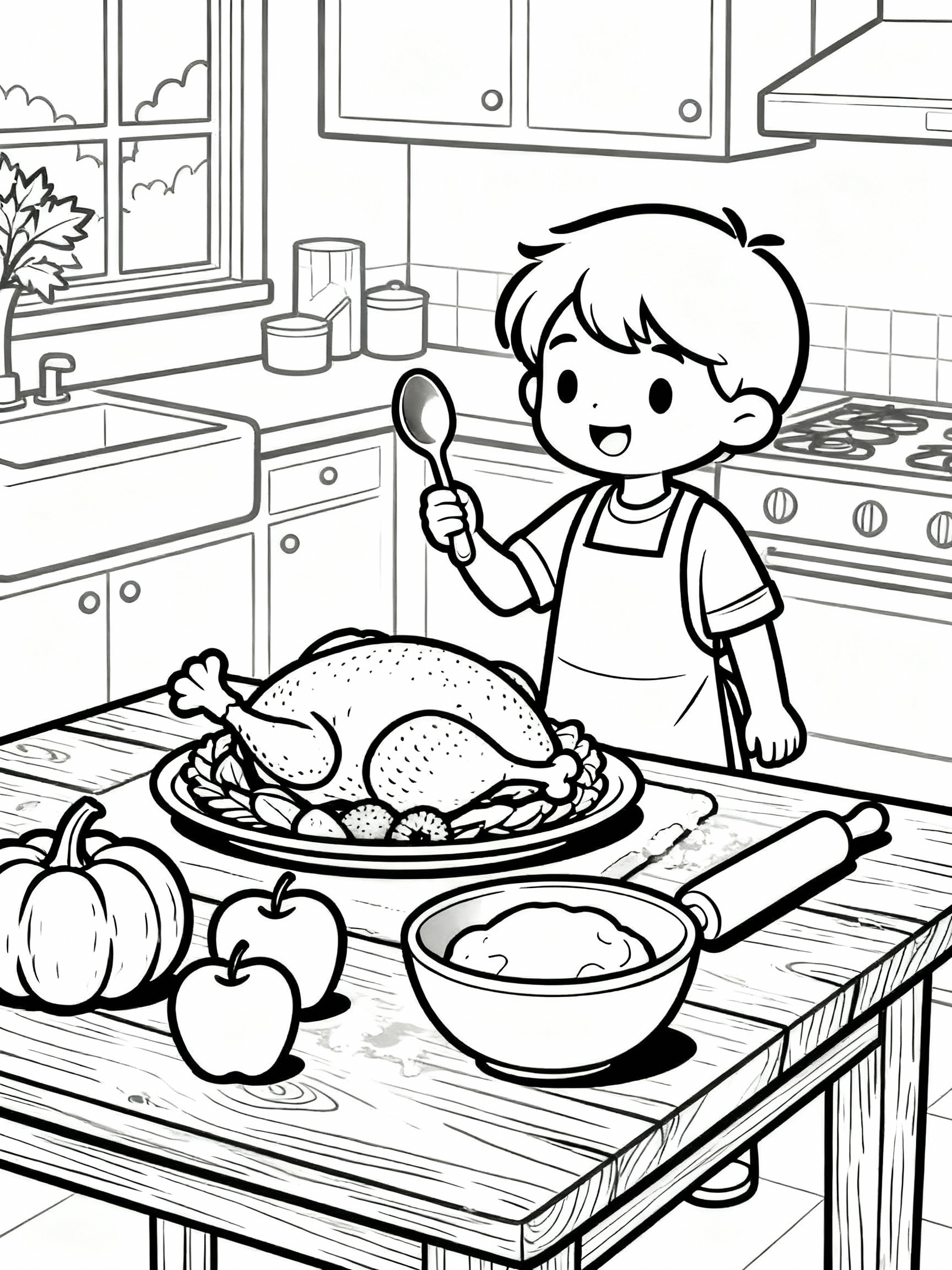 Join in the festive fun with the Fun Thanksgiving Feast Preparations coloring page, featuring a lively gathering and humorous details that capture the joy of the holiday. This page is tailored for ages 5 and up, ensuring a delightful experience for young creators.