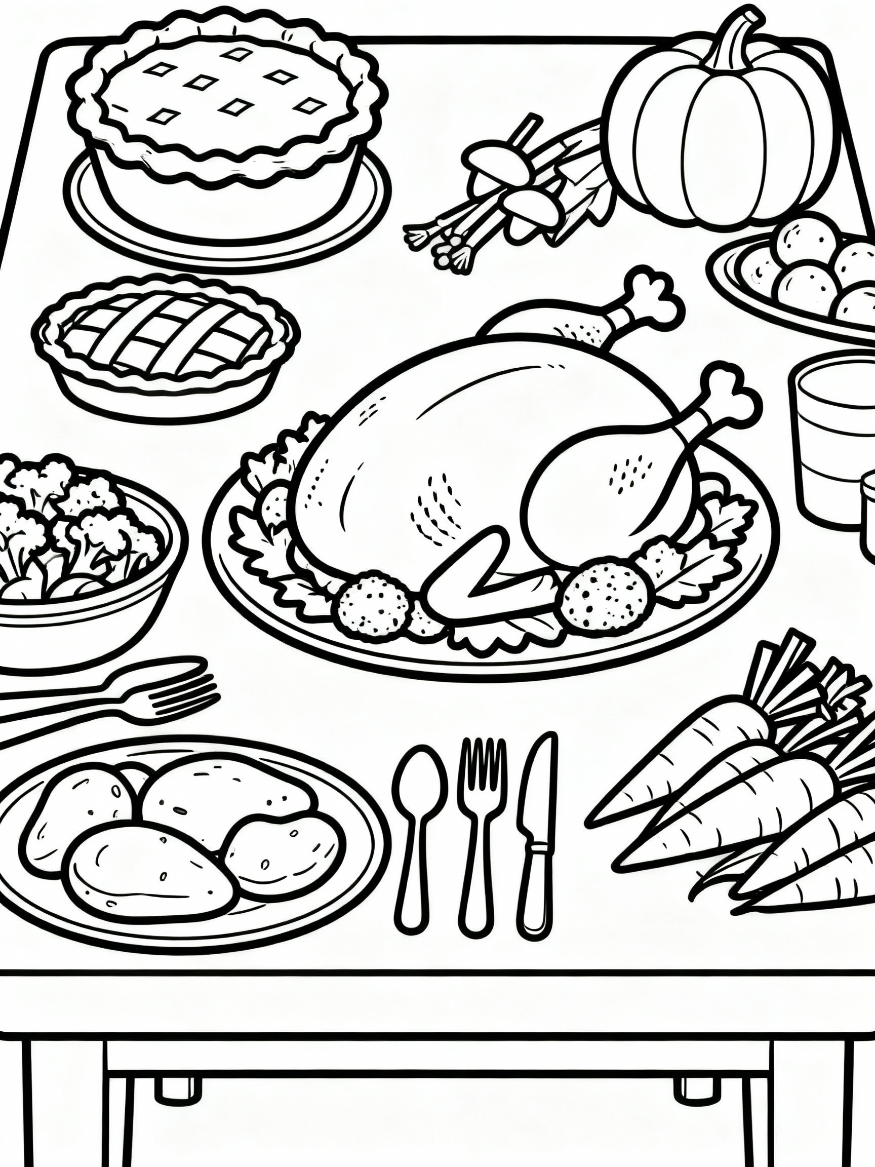 Transform the Nice Cartoon Thanksgiving Feast Preparations coloring page into a vibrant celebration of colors, featuring playful characters and festive elements that capture the holiday spirit. Perfect for children ages 5 and above, this delightful page is sure to entertain and inspire.