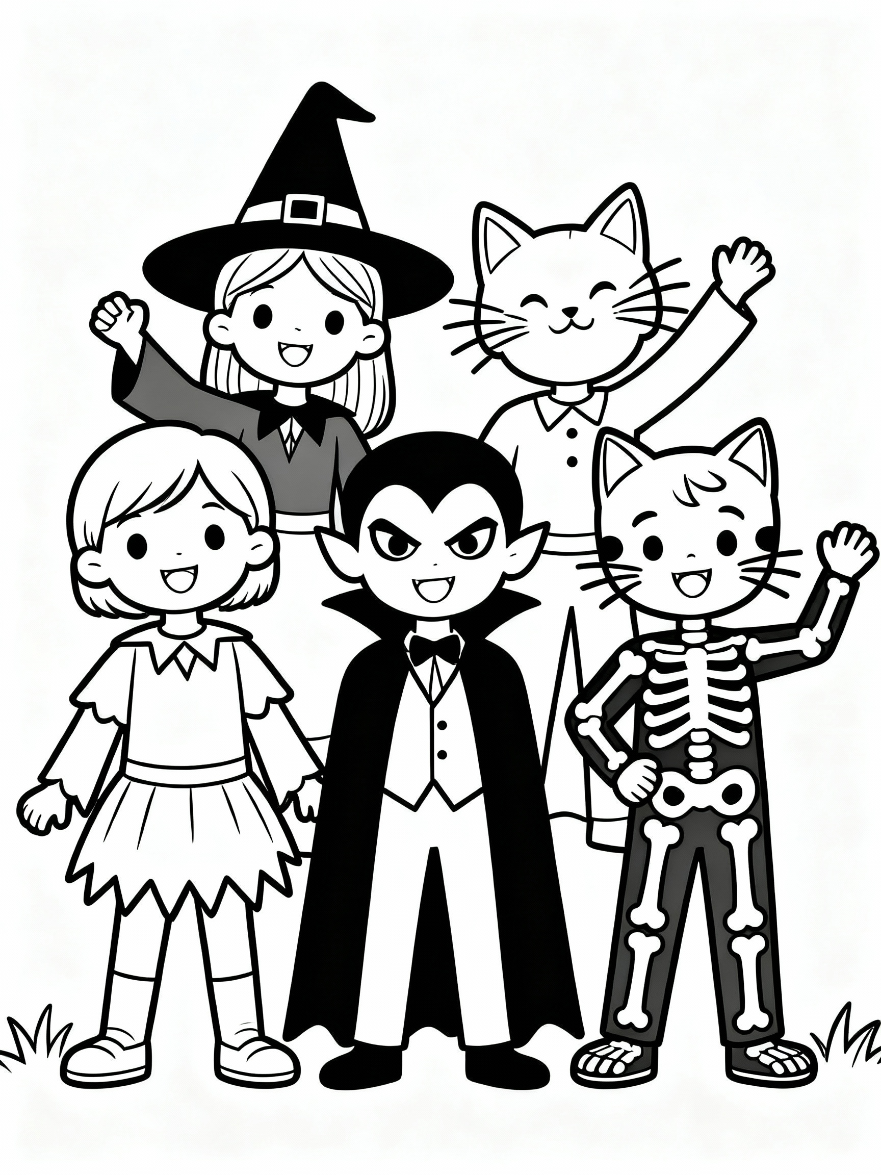 Embark on a whimsical adventure with this Beautiful Enchanting Halloween Costumes Coloring Page, featuring a variety of dazzling outfits that spark creativity. Ideal for ages 6 and up, the intricate details will keep young artists engaged and entertained.