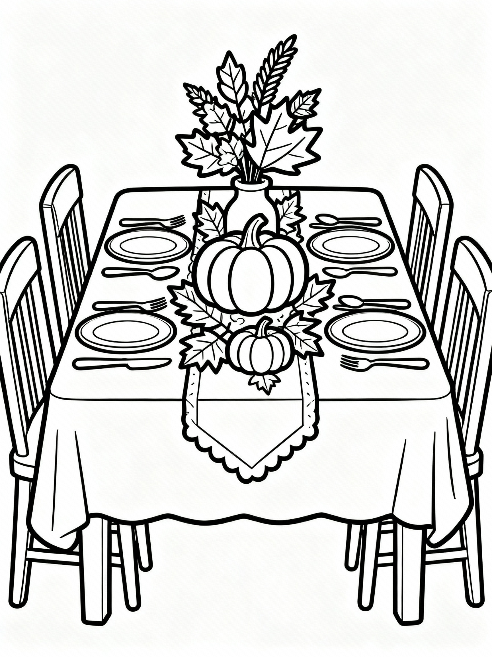 Dive into a whimsical world with the Magical Thanksgiving Table Decor coloring page, filled with enchanting patterns and festive motifs. Perfect for older kids and adults, this design invites you to bring a splash of color to your Thanksgiving celebrations.