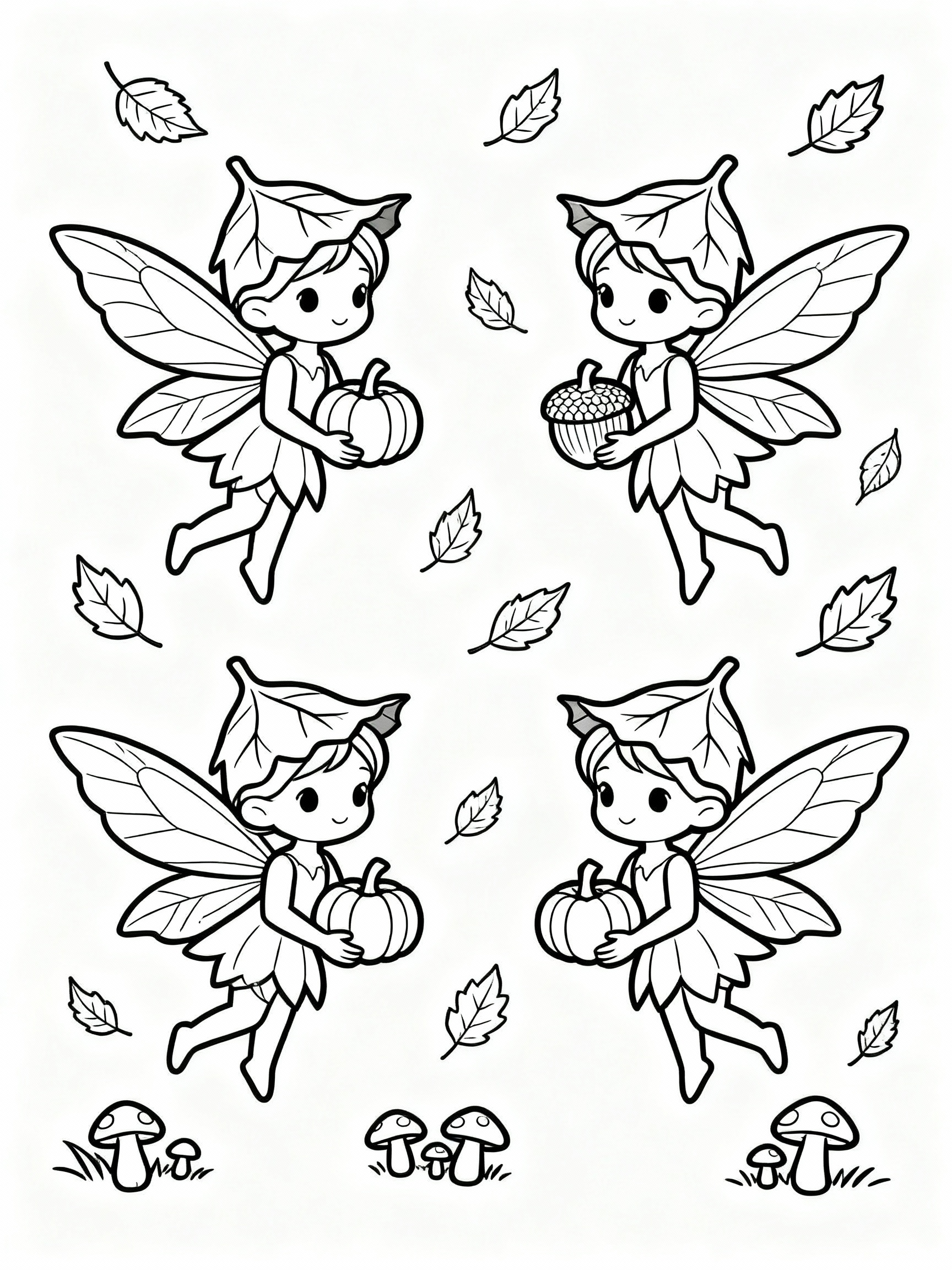 Delight in the charm of the Lovely Magical Autumn Fairies Coloring Page, where sweet fairy figures frolic across a backdrop of stunning fall scenery. This inviting design is perfect for young children and offers a gentle introduction to the art of coloring.