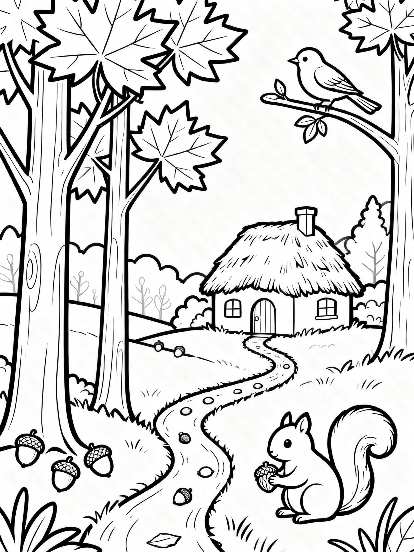 Bright and positive, the Delightful Cute Enchanted Autumn Landscapes Coloring Page offers a charming and easily approachable design, making it a perfect choice for beginners and young children eager to explore their art skills.