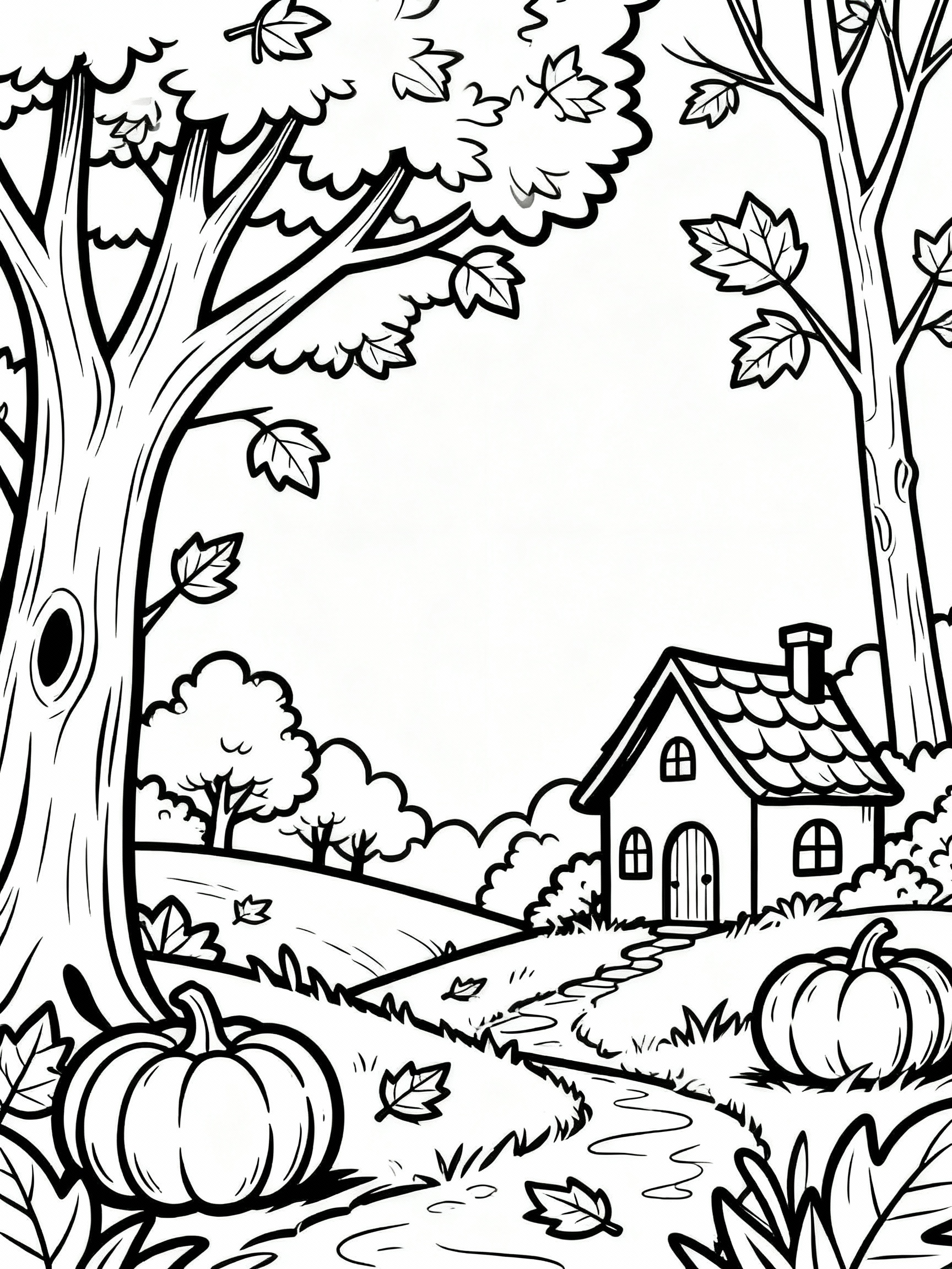 Joyful Cartoon Enchanted Autumn Landscapes Coloring Page