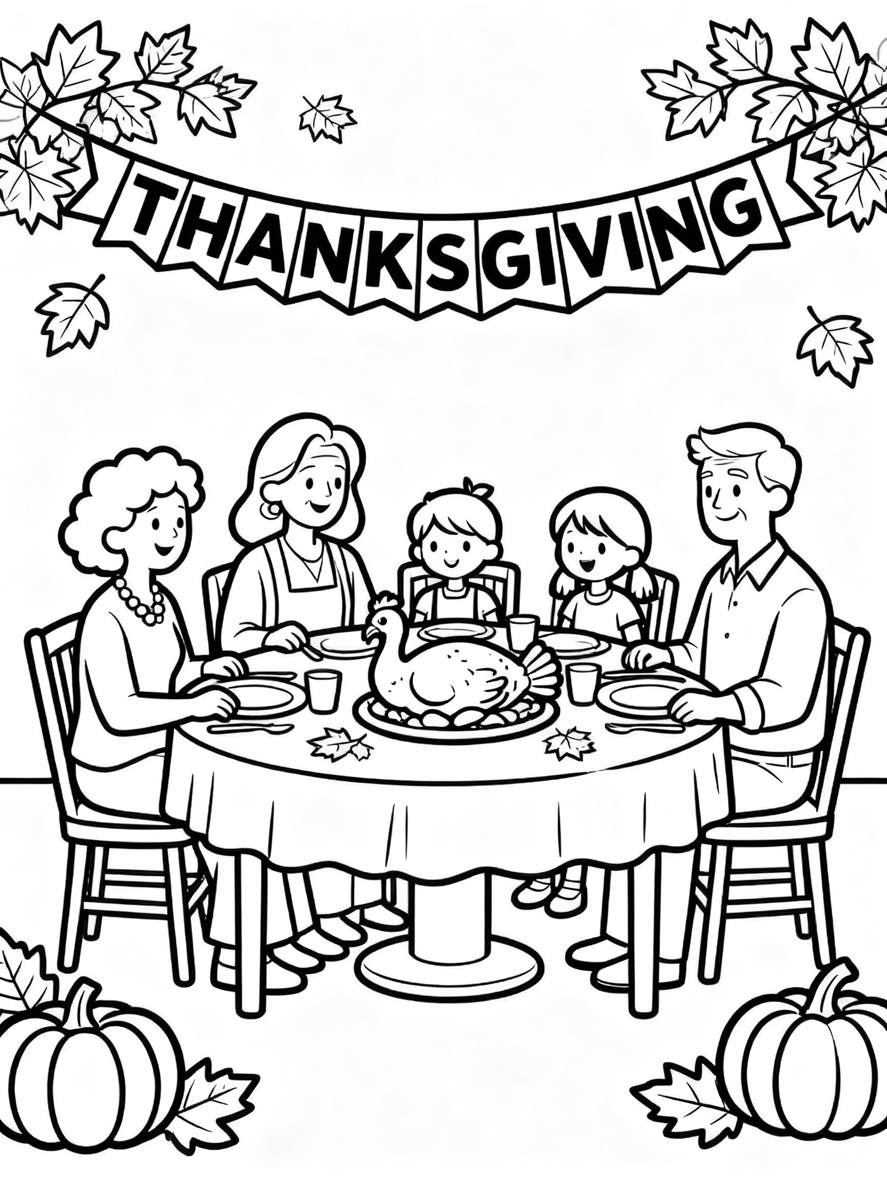 Festivity and joy unite in the Delightful Festive Thanksgiving Family Gatherings Coloring Page, adorned with lively characters and seasonal elements. Great for kids and families, this page invites joyful expression through color.