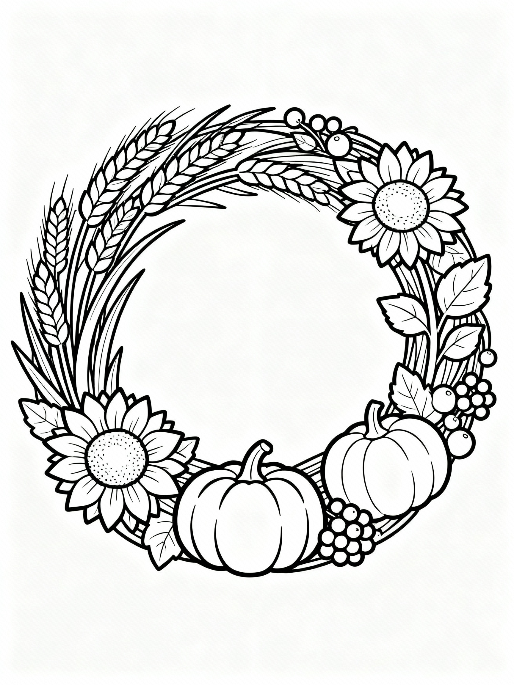 The Gorgeous Cute Festive Harvest Wreaths Coloring Page invites you to indulge in a delightful coloring experience adorned with lovely seasonal accents. This design is great for all age groups, making it a fun activity for family bonding or solo relaxation.