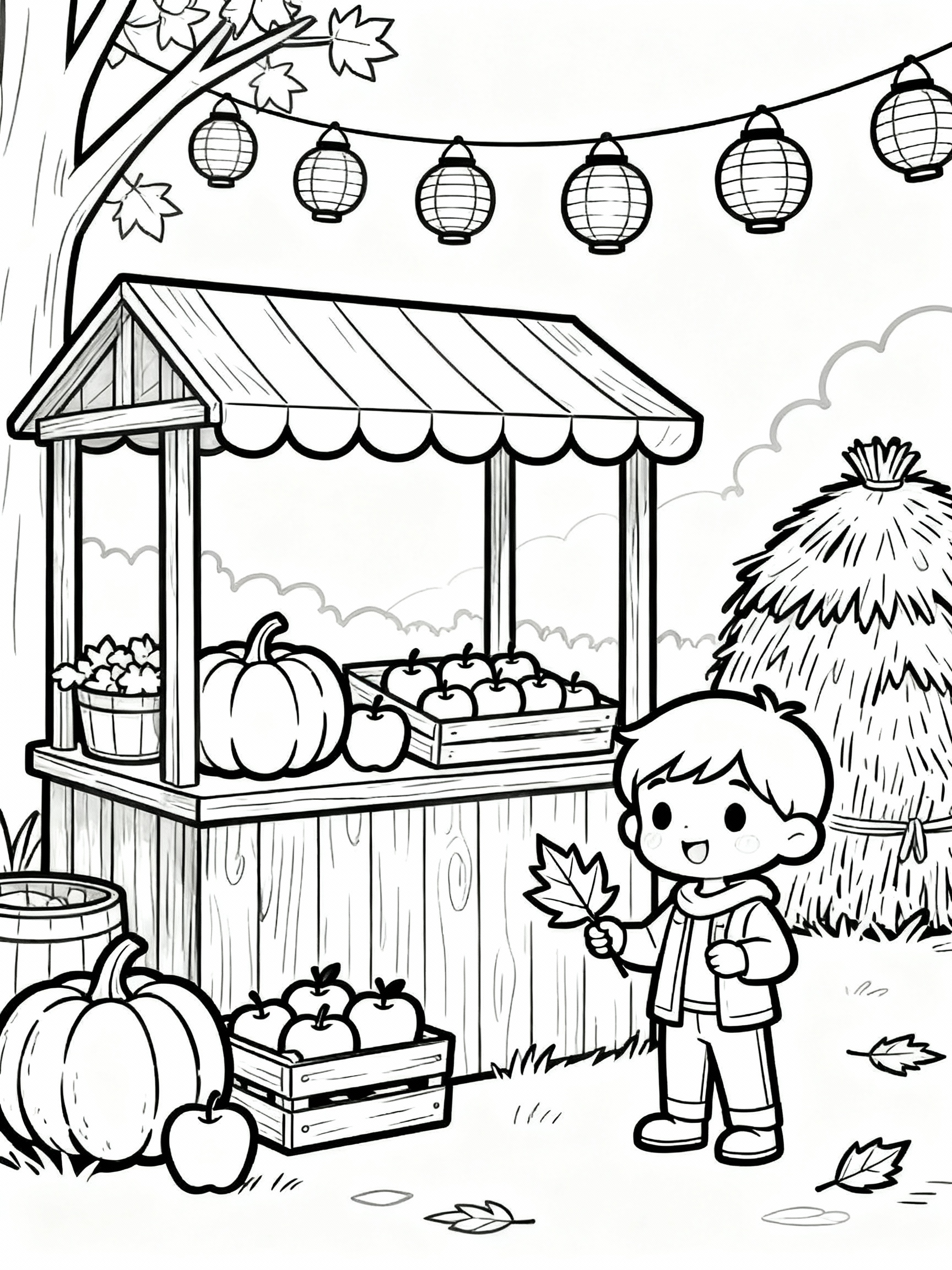Unleash your creativity with the Magical Festive Autumn Markets coloring page, featuring whimsical market scenes that spark joy and imagination. This captivating design is suited for older children and adults, offering a delightful challenge with its intricate patterns and enchanting elements.
