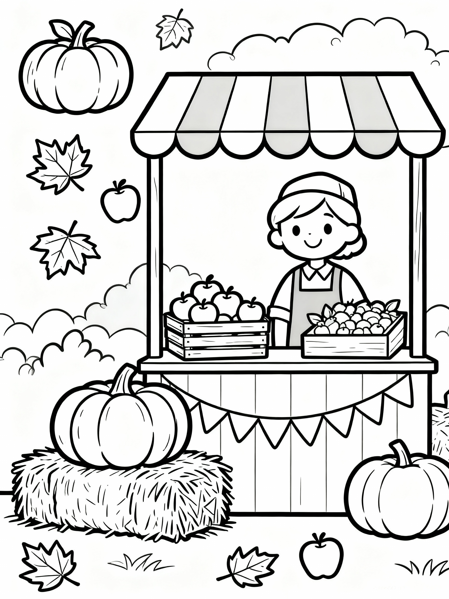 Create your perfect autumn scene with the Perfect Festive Autumn Markets coloring page, where each stall is brimming with seasonal delights. This design excels in its balance of detail and simplicity, making it a fantastic choice for colorists of all ages.