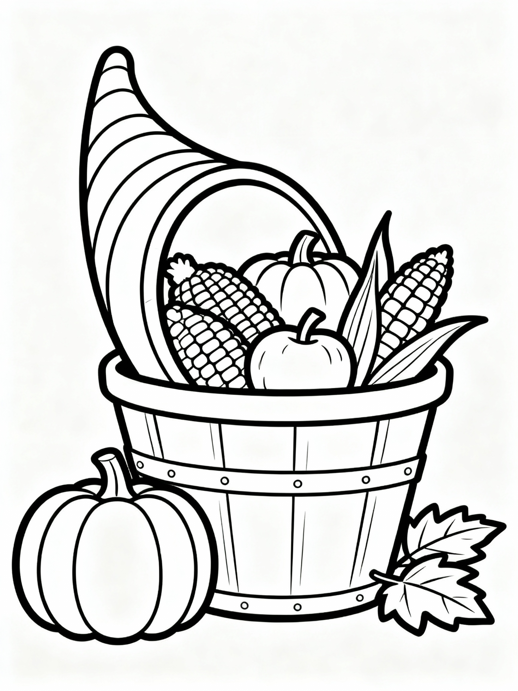 Happy Thanksgiving Cornucopia Delights Coloring Page