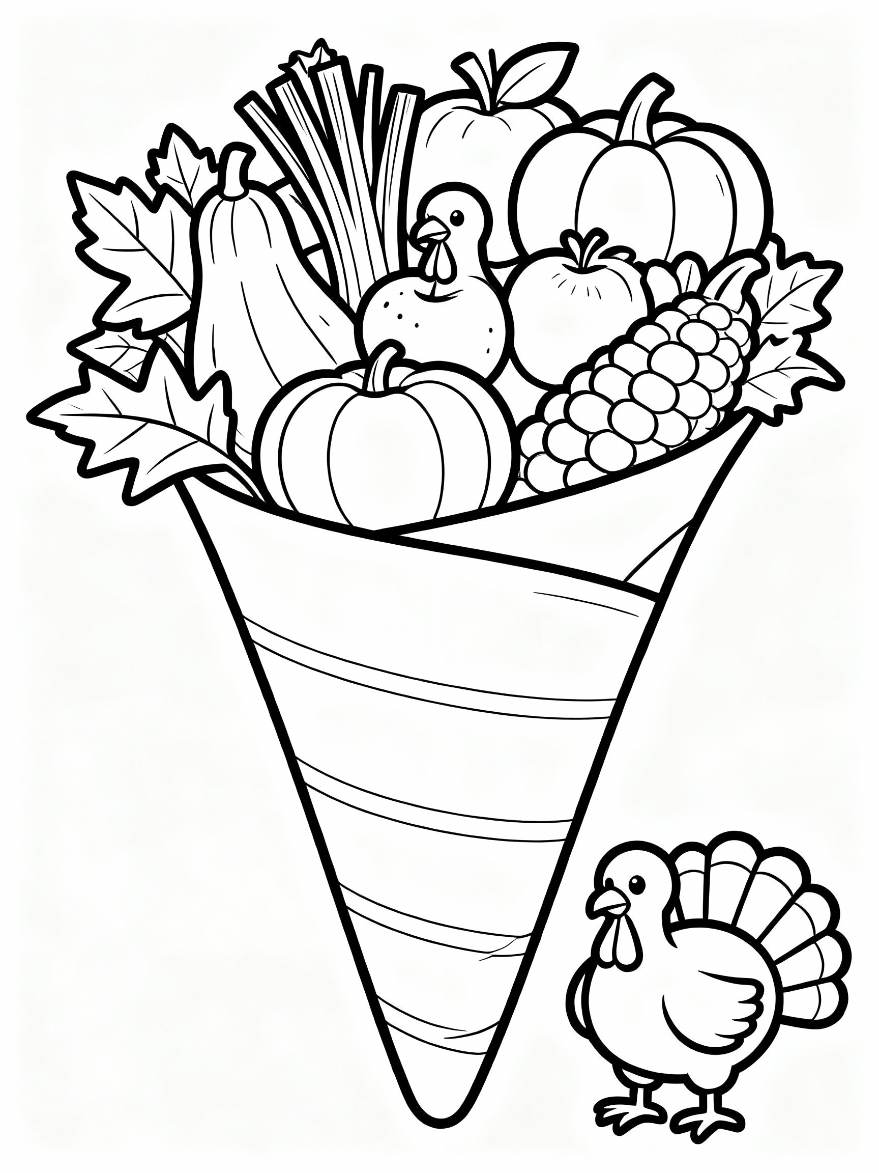 Celebrate the spirit of Thanksgiving with the Perfect Thanksgiving Cornucopia Delights Coloring Page, featuring an overflowing cornucopia filled with seasonal fruits and vegetables. This engaging design is suitable for all ages, providing a delightful artistic experience.