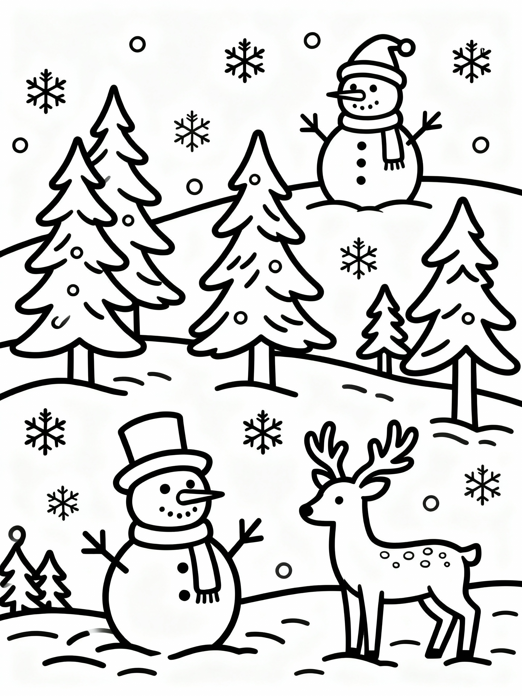 This incredible whimsical winter wonderland is a tribute to the enchanting beauty of winter, providing an engaging yet accessible coloring challenge suitable for artists of various ages and abilities.