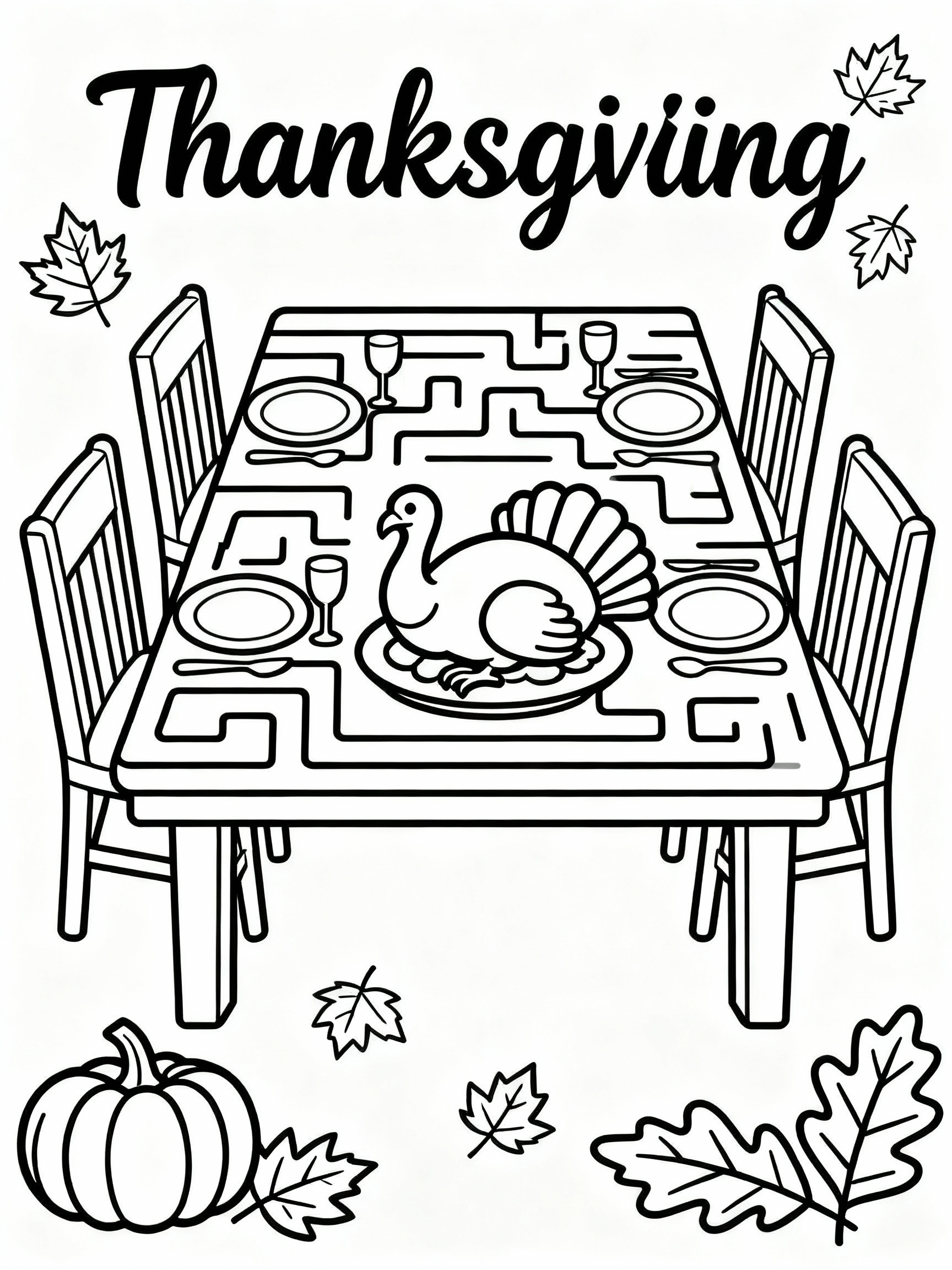 Delightful Happy Thanksgiving Table Maze Coloring Page