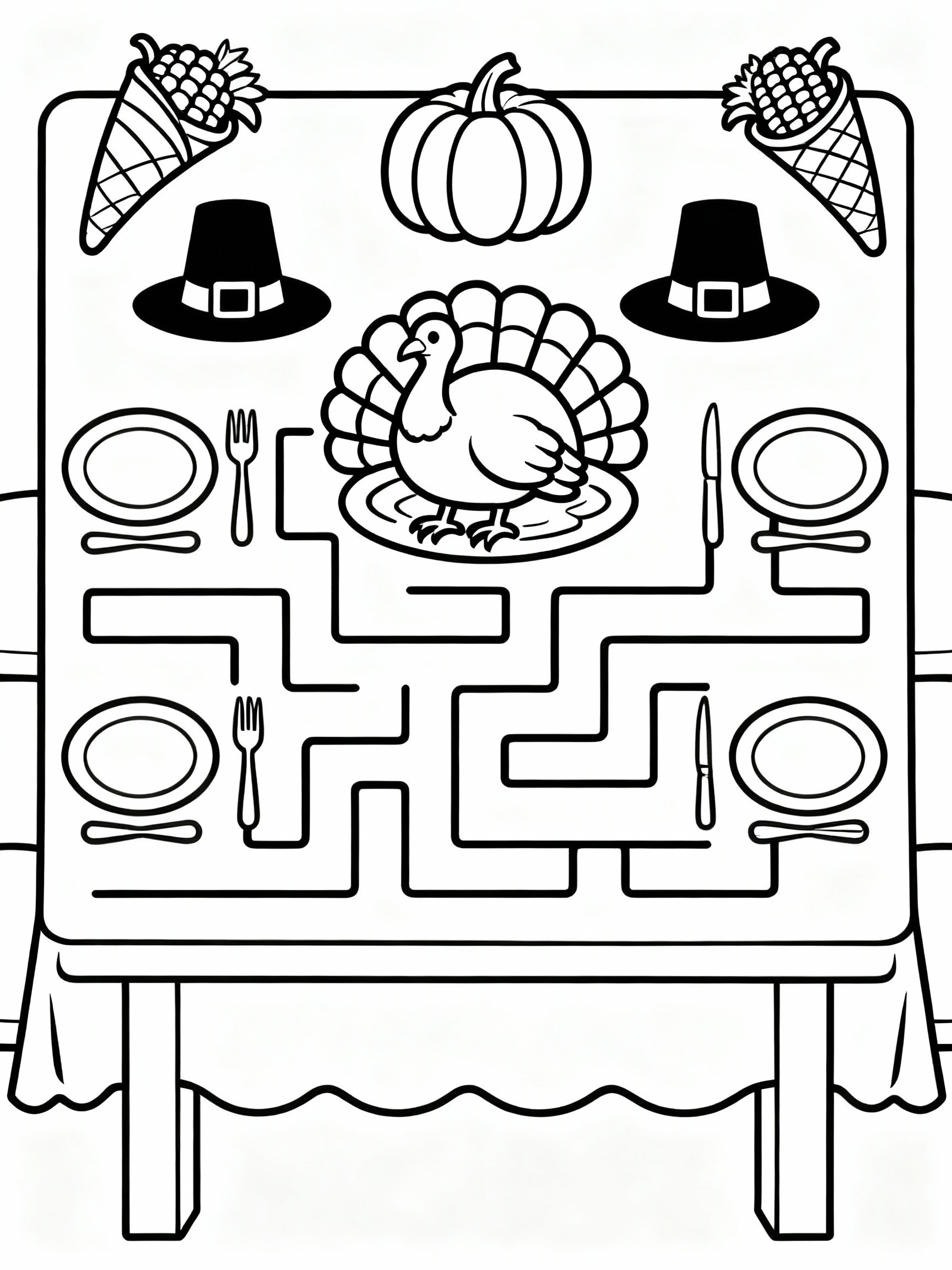 Celebrate the spirit of Thanksgiving with the Fun Thanksgiving Table Maze Coloring Page, where laughter and creativity come together in a lively maze. This design is perfect for children aged 5 and up, offering a joyful coloring experience for all.