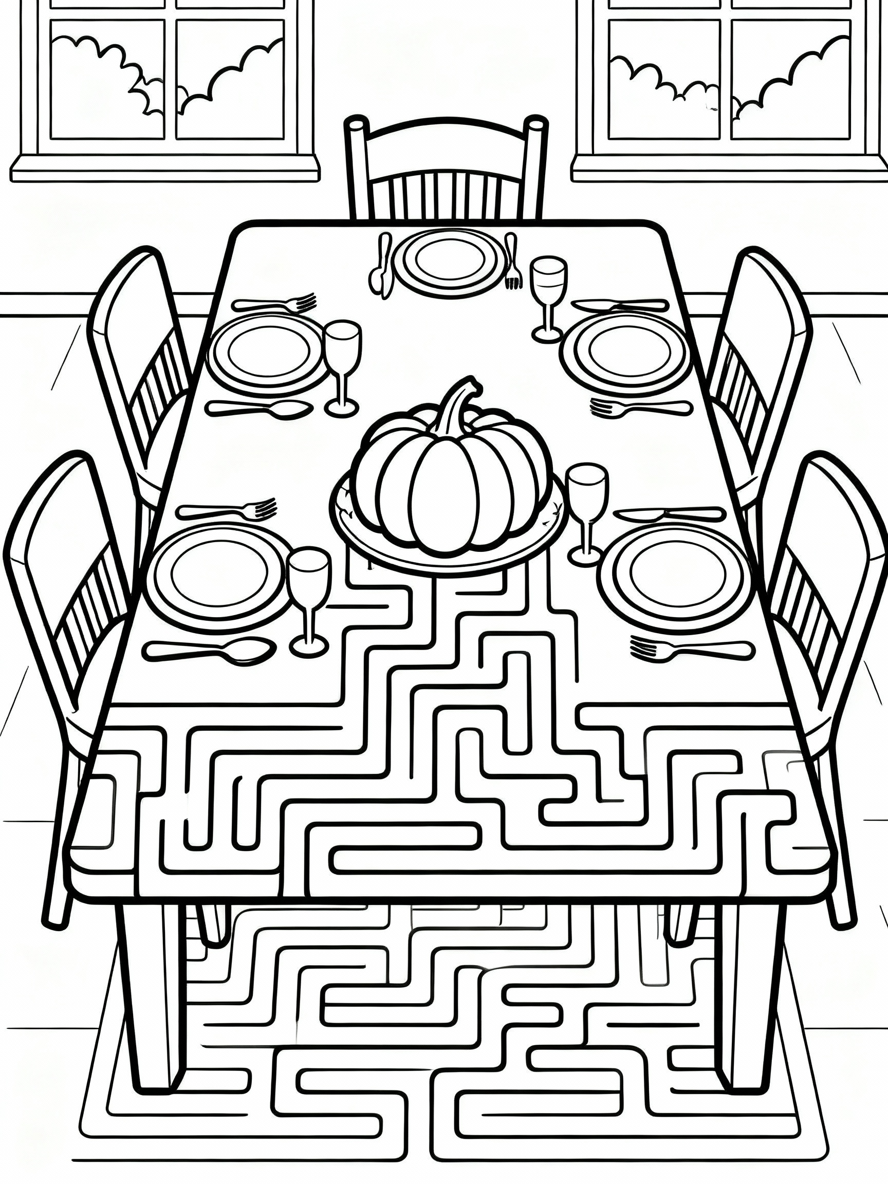 The Gorgeous Happy Thanksgiving Table Maze Coloring Page captivates with its intricate details and festive ambiance, inviting you to explore every corner. Recommended for ages 8 and older, this design offers a delightful challenge for seasoned young artists.