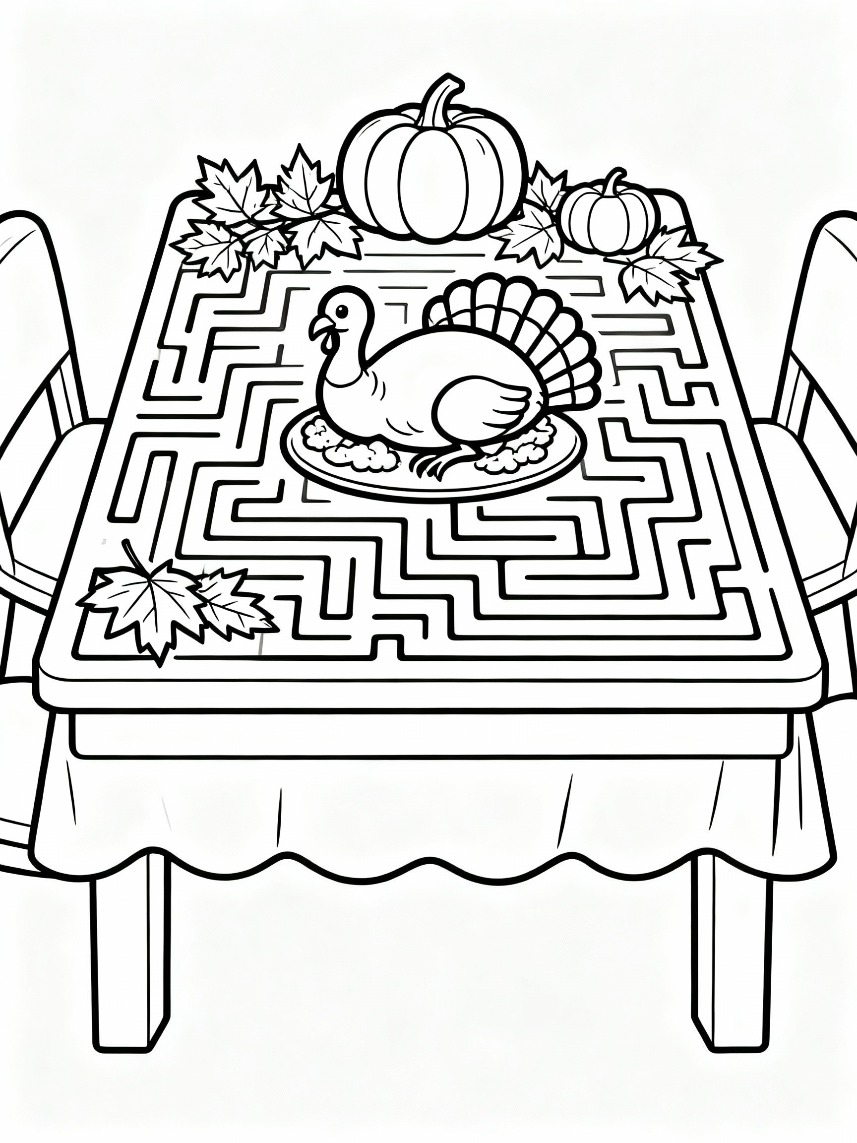 Joyful Happy Thanksgiving Table Maze Coloring Page
