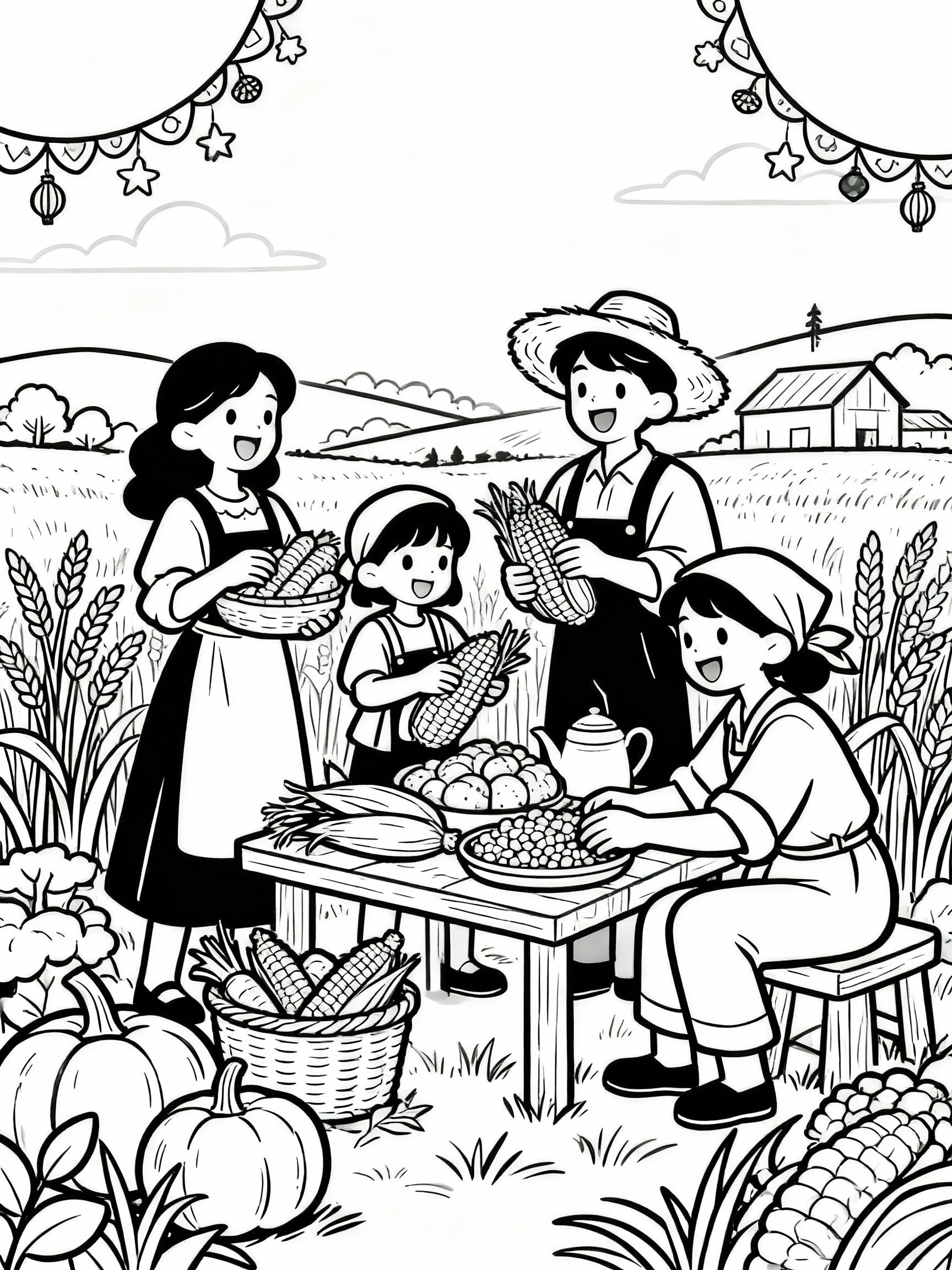 Discover the Perfect Joyful Harvest Gathering coloring page, crafted for collaborative family fun, where older kids and adults can connect through the joy of art while enhancing their skills with intricate designs.
