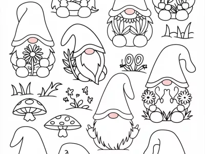 These pages feature cute, cartoonish gnomes perfect for younger kids. They usually have friendly expressions and fun backgrounds, making them ideal for little hands.