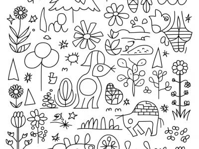 DownloadDive into a whimsical world with this enchanting coloring page featuring intricate floral patterns intertwined with playful creatures, perfect for budding artists aged 8 and up. The detailed designs invite creativity and mindfulness, transforming each stroke into a vibrant masterpiece.