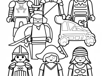 These pages feature beloved Playmobil characters like knights, pirates, or city figures, allowing kids to color their favorite heroes or villains.